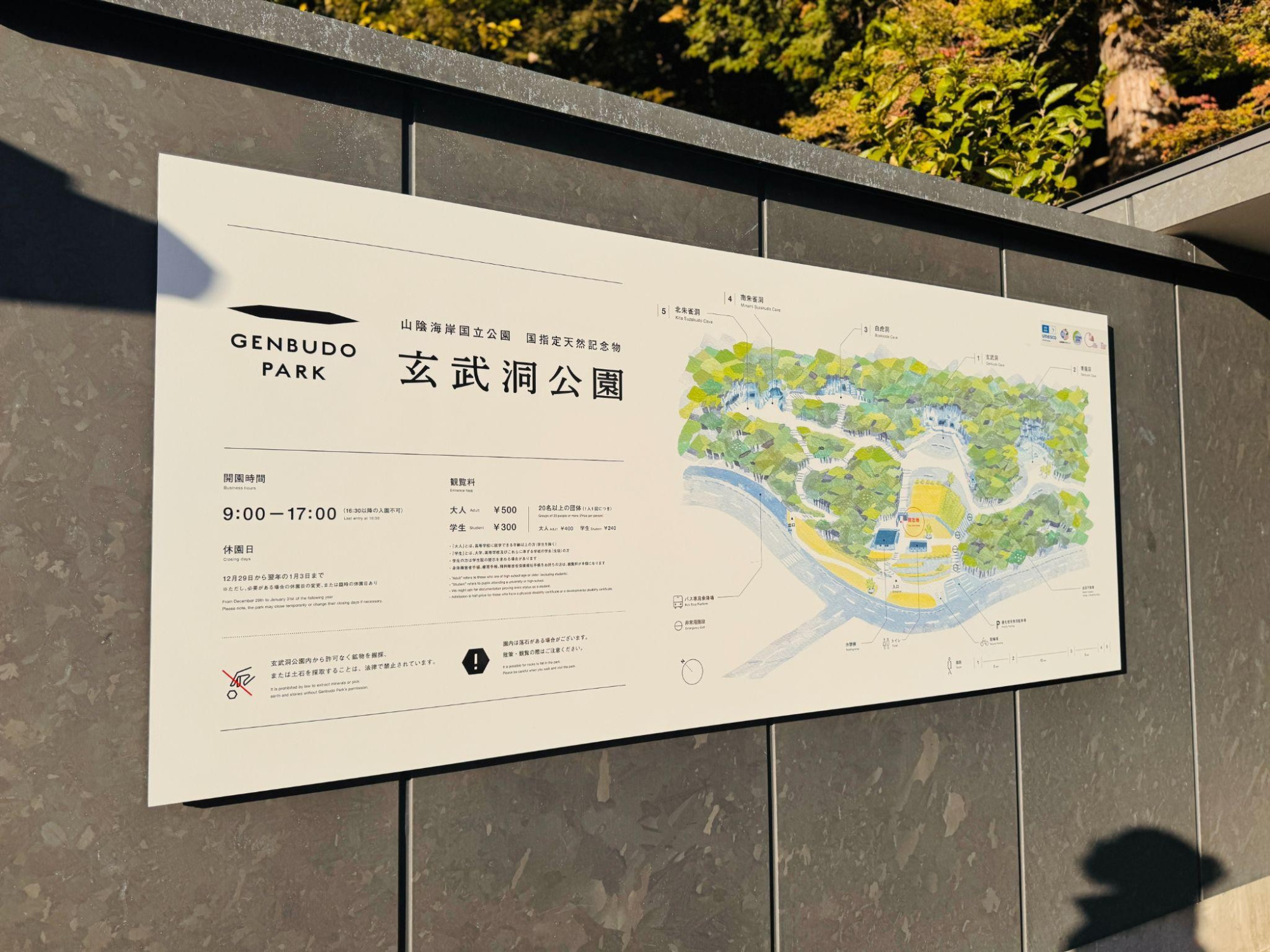 Genbudo Park is recognized by the UNESCO Global Geoparks, the San’in Kaigan Geopark, Geoparks Japan, and the Global Geoparks Network. In 2007, it was selected as one of the "Top 100 Geological Sites of Japan" and in 2022 as one of the "Top 100 Geological Heritage Sites of the World."