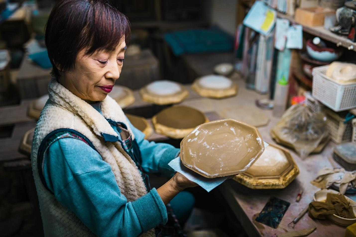 Simply put, it is nature that controls the content of the clay and, to some extent, the heat of the fire in the kiln. The artisan works with the clay to shape it, works with the kiln to fire it, but the final outcome is completely unknown. Even the most perfectly formed piece can crack in the heat of the kiln and be lost forever. And when it does, the artisan simply accepts their loss and transforms the broken pieces into accessories and mosaic tiles.