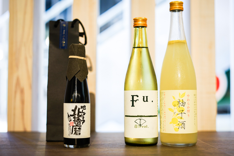 ショップでは、老舗の醤油屋のお醤油や地産のお酒、soraかさいオリジナルのマドレーヌやステッカーなども販売されています。