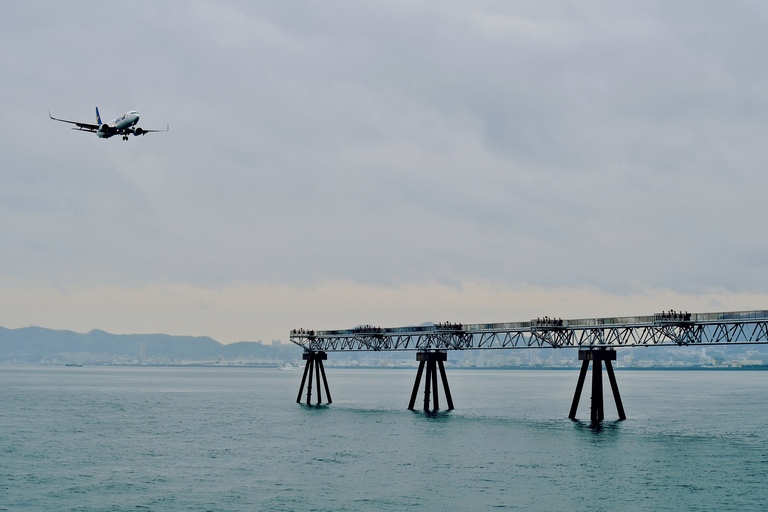 Although the weather wasn't great that day, the views from the upper deck were breathtaking—the Rokko Mountains and the iconic Kobe Port Tower looked magical in the rain clouds. I stood alone, watching the port fade into the distance—it felt almost like a dream. I was also lucky to see planes landing near Kobe Airport. The captain chooses the route to match the airplane schedules so that you can enjoy this magical view, too!