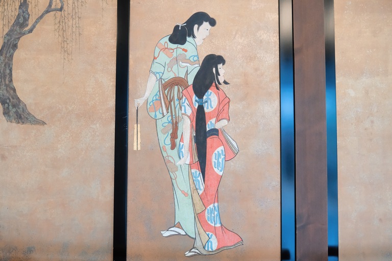 Constructed to resemble Kyoto's Imperial Palace, the foyer and lounge area are adorned with beautifully painted screens, and the high ceiling panels feature Japanese flower paintings.