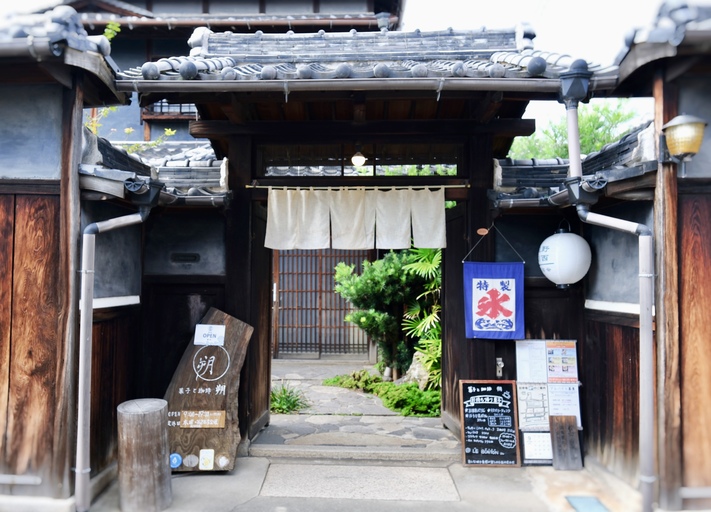 Although I was pretty full from lunch, I couldn't resist checking out Saku Sweets and Coffee. The entrance has a traditional gate leading into a building that’s been around since the Meiji period (1868-1912). It’s really amazing how many traditional buildings from different parts of Japanese history have survived in Tatsuno!