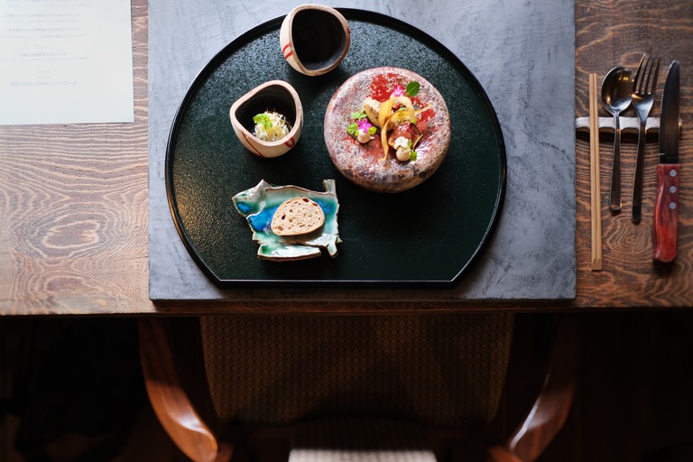 Why enjoy French cuisine while in Japan? Because each dish is crafted with locally sourced ingredients, resulting in genuinely indescribable flavors. Moreover, every plate used for the lunch course we experienced is made by artisans of Tamba Pottery, creating a unique blend of Japanese tradition and Western flavors. For me, eating at SAKURAI was more than just enjoying a meal—it's an opportunity to appreciate craftsmanship, connect with local culture, and understand the profound connection between the earth and what's on your plate.