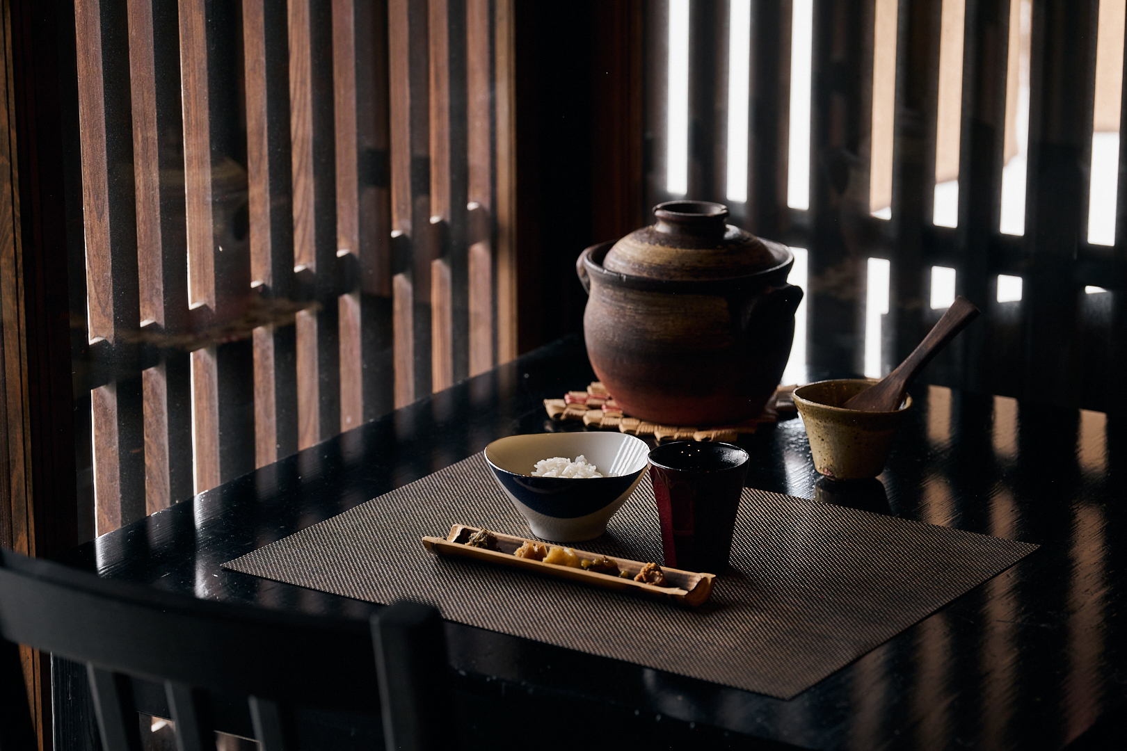 Every course highlights Tamba Sasayama’s ingredients. Maekawa collaborates with a childhood friend who hunts boar and deer in the nearby mountains. He bleeds and slow-cooks the meat in-house to create homemade hams, which are then served with freshly picked herbs from local fields. The rice, grown by his father, is sun-dried and cooked in earthenware pots, accompanied by various homemade pickles served in bamboo containers. The dishes are colorful and artistically presented, suitable for both casual and celebratory occasions, symbolizing a warm welcome from the entire town of Sasayama.