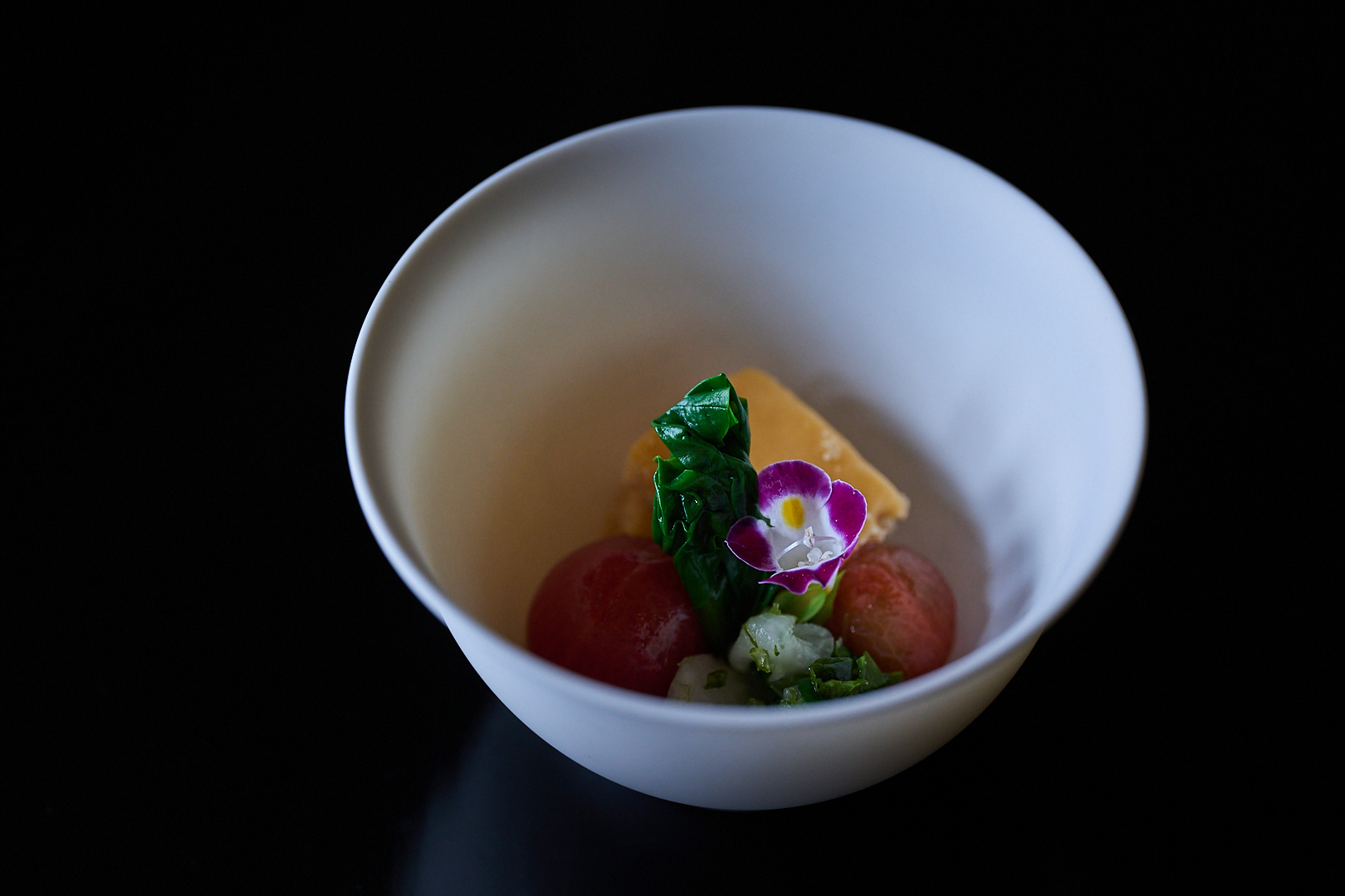 The menu only lists "tomato." “We aim to shift perspectives and highlight key ingredients. While the dish contains various elements, we want to leave the rest to the guests’ imagination,” Maekawa explains.