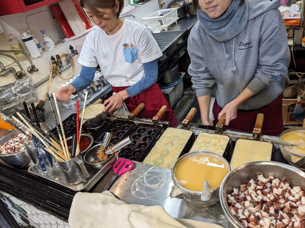 I was fascinated by the skill of the restaurant staff in making Akashiyaki.