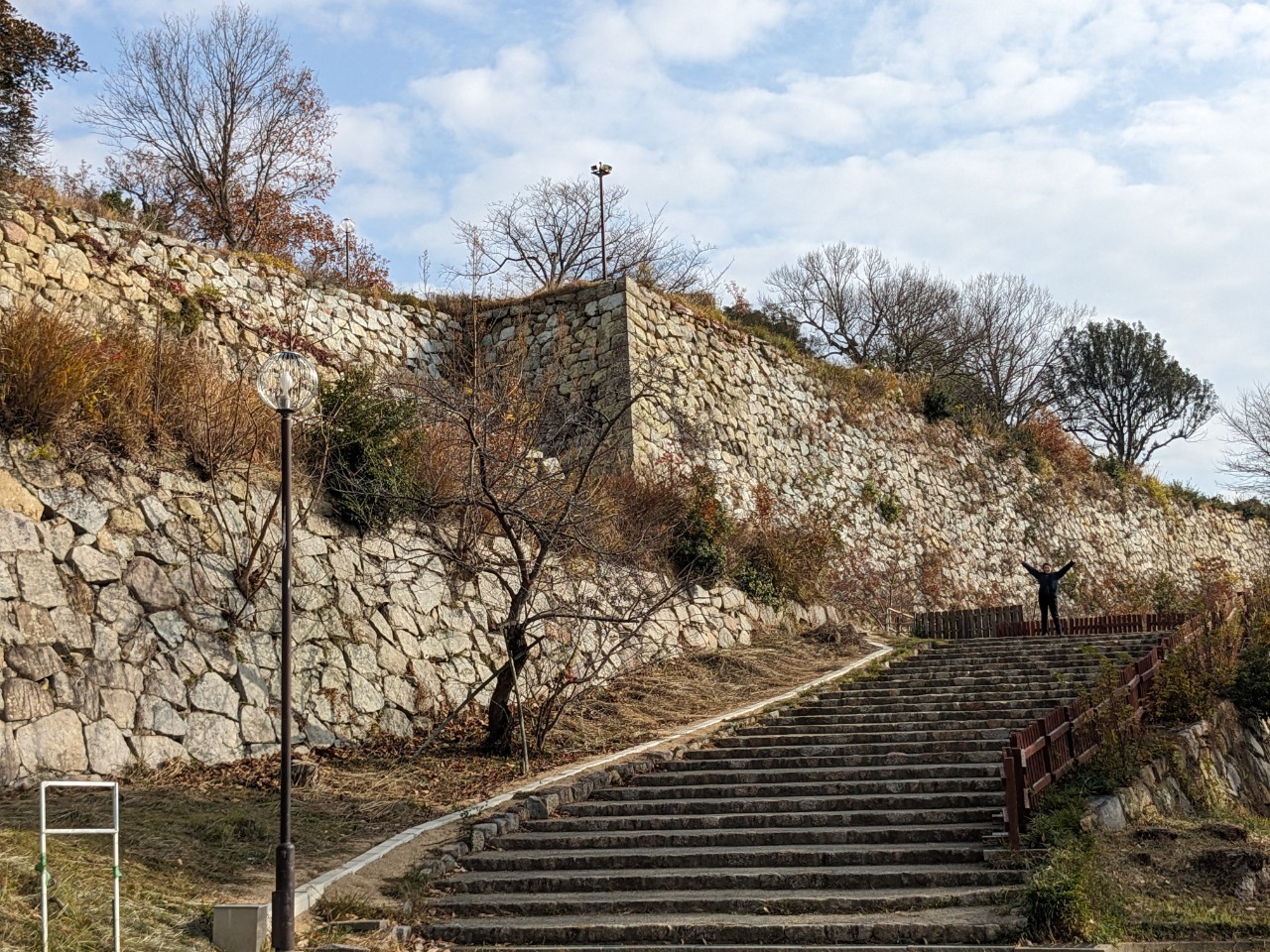 Akashi Castle is located in Akashi Park. This was my first time visiting, and I didn't expect it to be such a large and beautiful place. There is also a pond and a lawn, so it would be nice to take a walk or have a picnic. There is also a cafe that is perfect for taking a break during your walk or taking shelter from the rain, so it seems to me as a spot that even families with children can enjoy without worry.