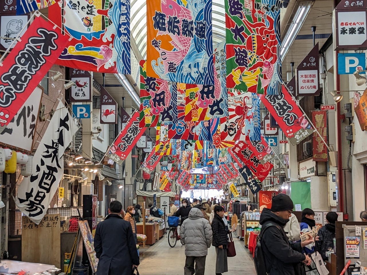 About a 10-minute walk from Akashi Castle, Uontana Shopping Street is a historic shopping street that is said to have been created by Miyamoto Musashi when he laid out the town. The 350m long arcade is lined with about 100 stores, mainly selling seafood such as Akashi octopus, a bounty of the Akashi Strait.