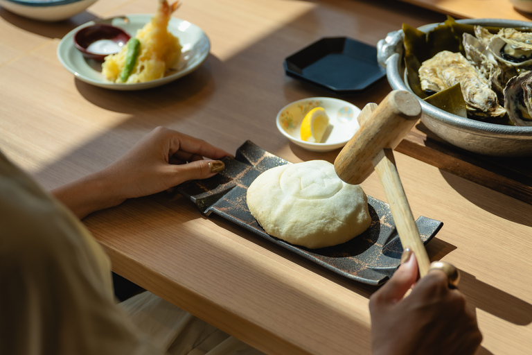 "Shio-gama ( ingredients are wrapped in salt and baked dish) Lunch," a lunch course that includes dishes featuring baked salt, which is broken with a wooden mallet before eating. (at Kamenoi Hotel Ako)