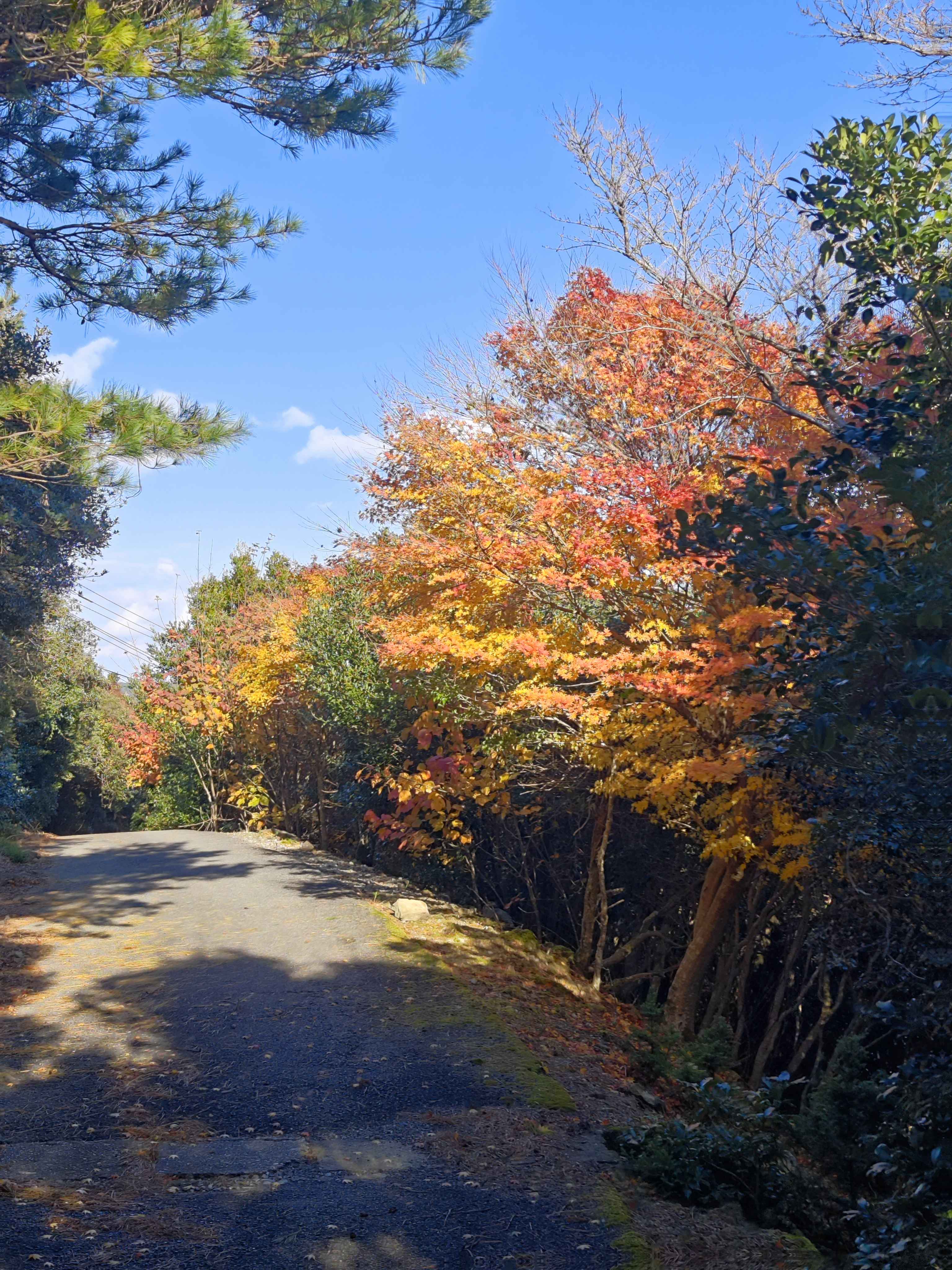 This time, I decided to take the Omotesando route. First, I started from the roadway on Kuroiwa Coast, saw the signboard of the Yuzuruha Old Road Omotesando, and entered the old road. There are old roads with bumpy stones and stone steps that remain to this day, so I climbed without slipping. On the way, there are many Jizo statues, making it a route where you can feel the history of the mountain.