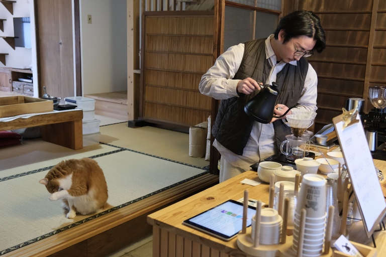 When my legs began to ache from wandering, I found the perfect place to pause: a small kominka café called Ueda Coffee Roastery (上田珈琲焙煎所), tucked inside one of the town's old wooden homes.