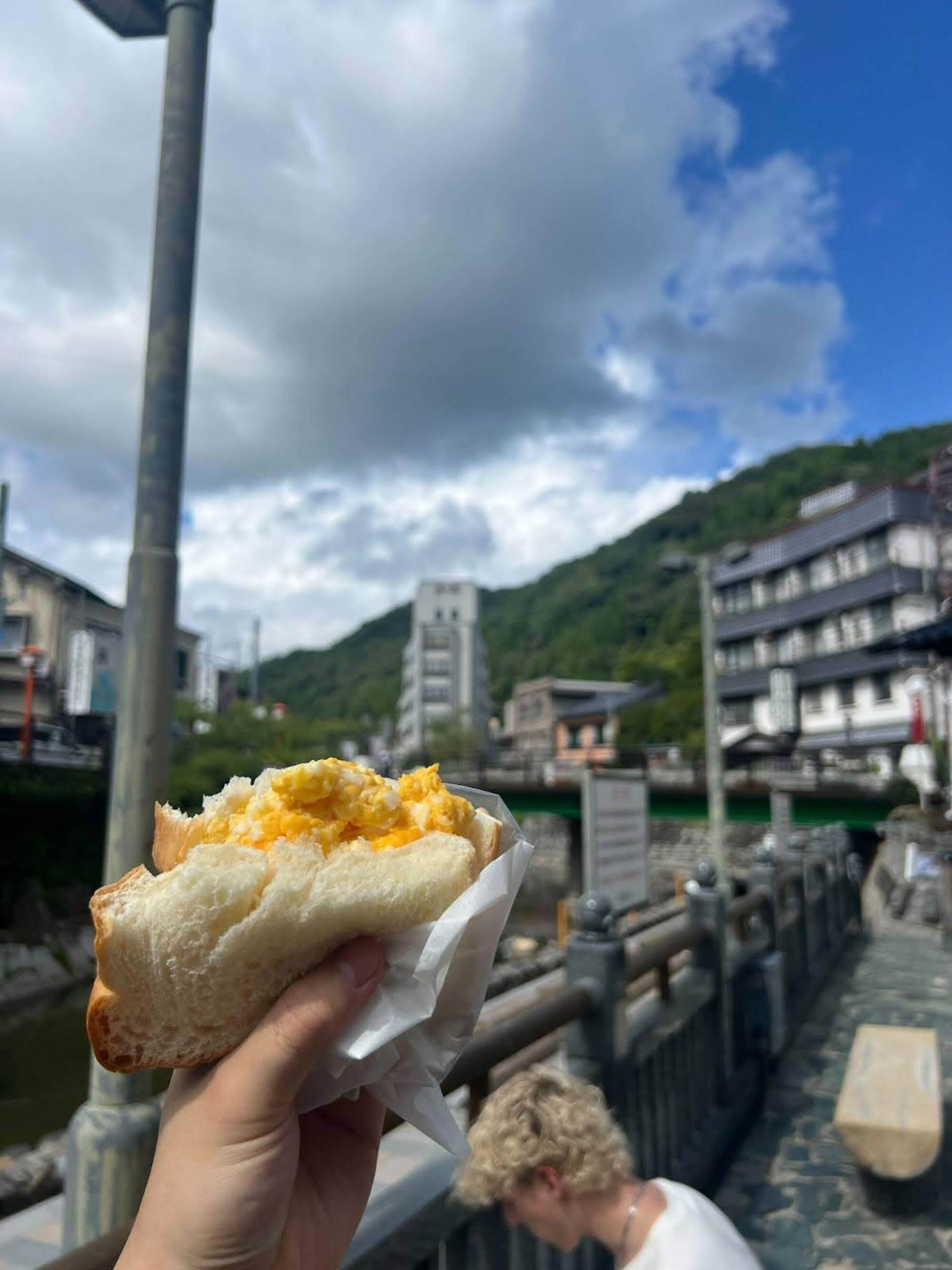 We made egg sandwiches by boiling eggs directly in the onsen a local tradition called “Yugaki” (ゆがき). The hot spring source, known as Arayu, reaches nearly 98°C, and locals have been using it for generations not just for washing but also for cooking. I bought a small bag of eggs from a nearby shop and lowered them into the steaming water beside the river. After about 10 minutes, they were perfectly boiled. the kind of soft, rich texture that only natural spring water seems to create. We cooled them down and turned them into the fluffiest sandwiches I’ve ever eaten.