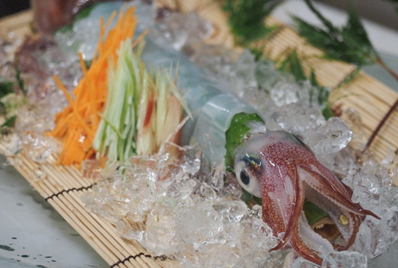 ●白花枝又被稱為花枝女王,是兵庫縣夏天代表性的美食。兵庫日本海的白花枝濃郁香甜,肉身厚實鮮脆,尤其清澈透明的白花枝生魚片,鮮甜到不需醬油等沾醬就足夠美味。